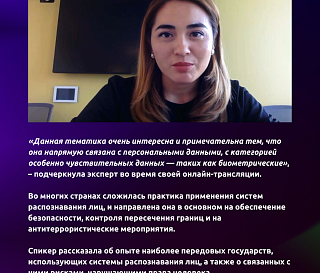 «Данная тематика очень интересна и примечательна тем, что она напрямую связана с персональными данными, с категорией особенно чувствительных данных — таких как биометрические», – подчеркнула эксперт.
