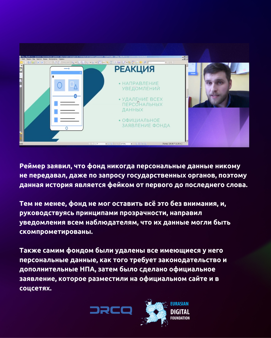 Реймер заявил, что фонд никогда персональные данные никому не передавал, даже по запросу государственных органов, поэтому данная история является фейком от первого до последнего слова.