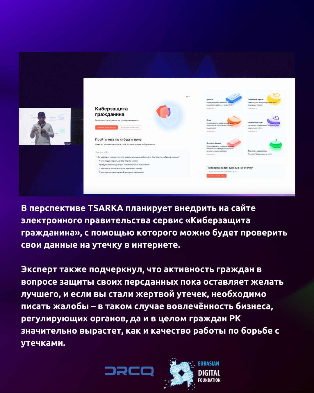 В перспективе TSARKA планирует внедрить на сайте электронного правительства сервис «Киберзащита гражданина», с помощью которого можно будет проверить свои данные на утечку в интернете.