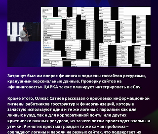 Затронут был им вопрос фишинга и подмены госсайтов ресурсами, крадущими персональные данные. Проверку сайтов на «фишинговость» ЦАРКА также планирует интегрировать в eGov.