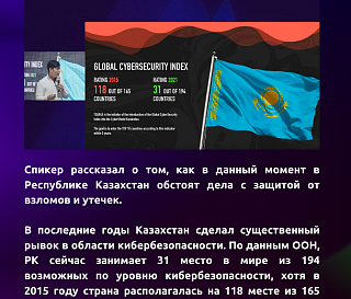 В последние годы Казахстан сделал существенный рывок в области кибербезопасности. По данным ООН, РК сейчас занимает 31 место в мире из 194 возможных по уровню кибербезопасности, хотя в 2015 году страна располагалась на 118 месте из 165 возможных.